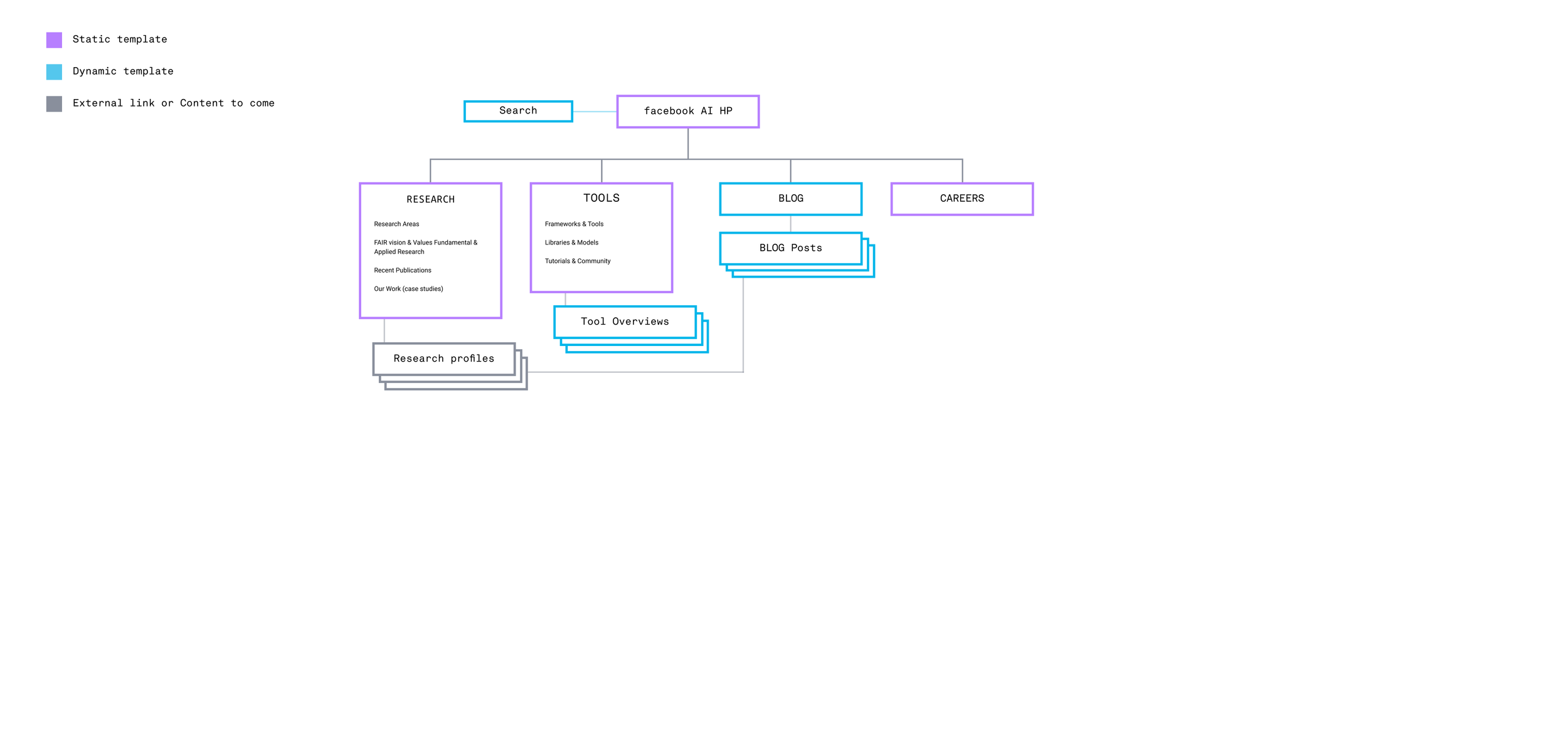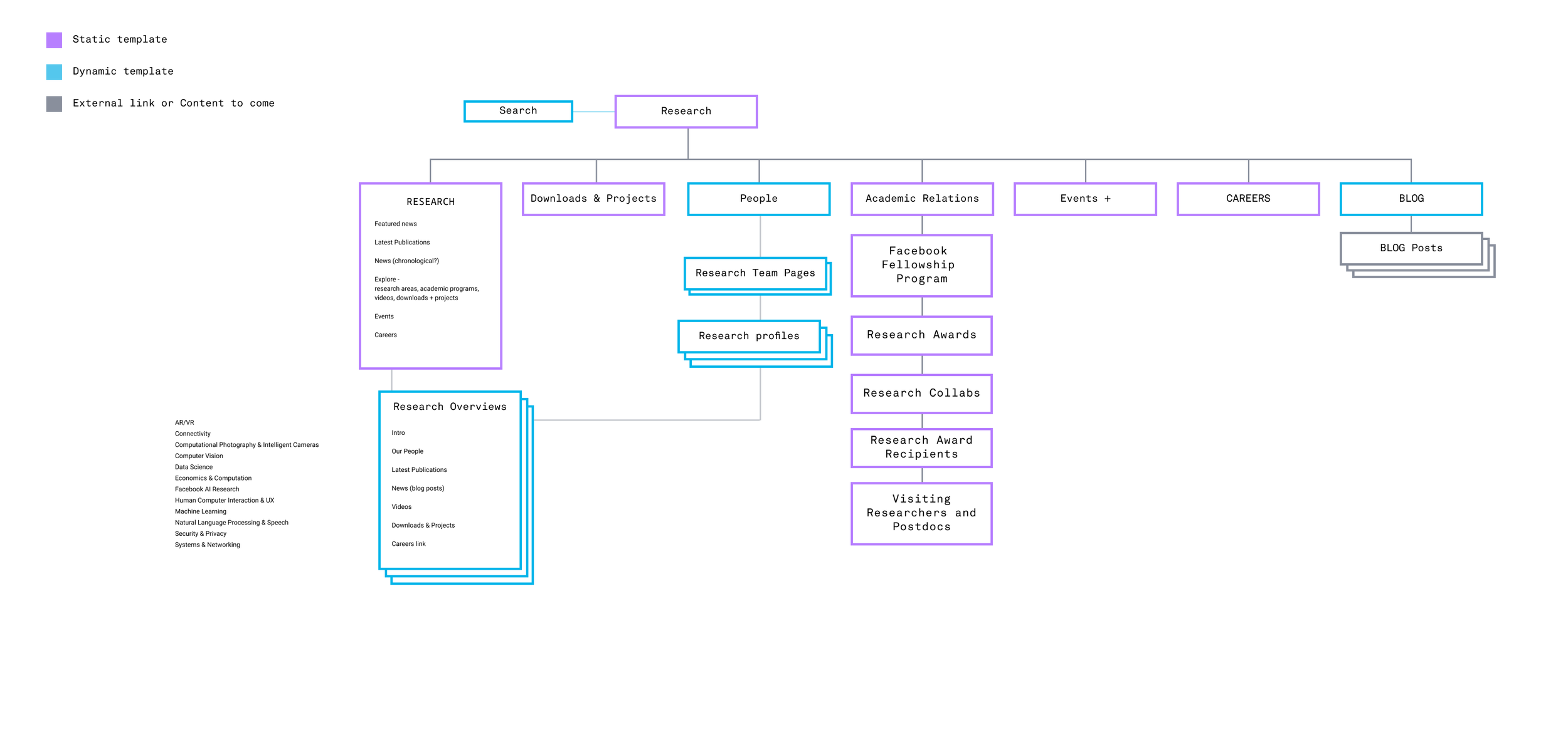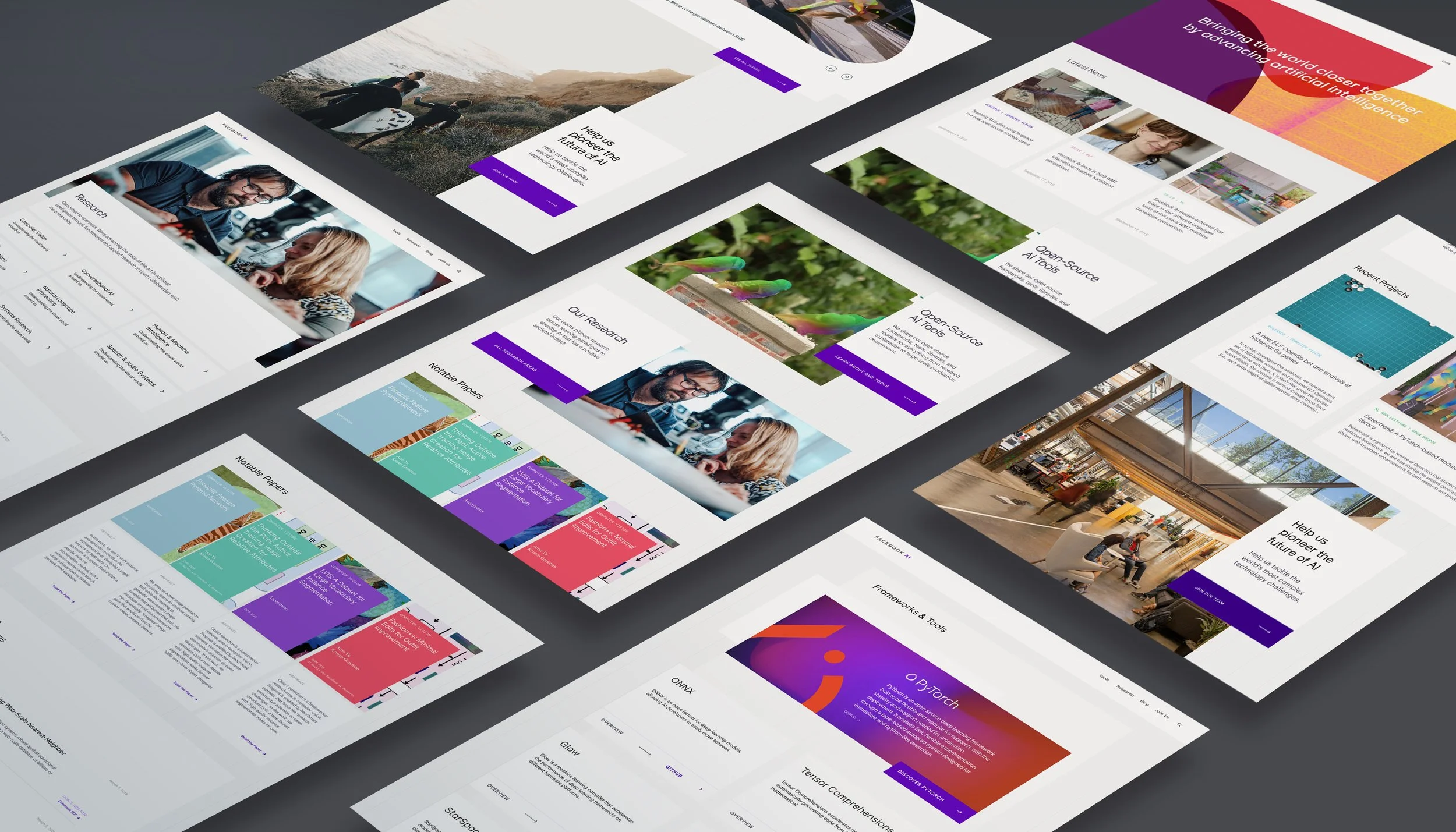 Facebook’s Artificial Intelligence programs, research and tools were tucked away under a larger R&D information architecture. The task was to surface and present Facebook’s AI programs with a community-centric design that appeals to established computer scientists and the broader Facebook community.